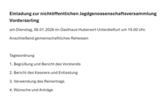 Nichtöffentliche Jagdgenossenschaftsversammlung am 6.1.2026