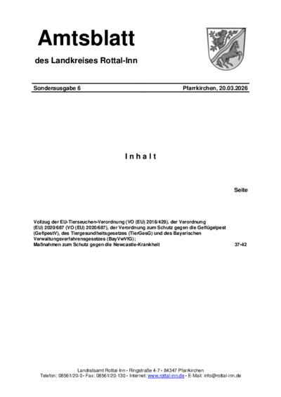Im Landkreis Rottal-Inn wurden am 5. März 2026 sowie am 19. März 2026 Ausbrüche der Newcastle-Krankheit (ND) festgestellt. Diese hochgradig ansteckende Viruserkrankung betrifft vor allem Vögel und verläuft häufig tödlich. Die Newcastle-Krankheit breitet sich durch direkten Kontakt zwischen Vögeln sowie über kontaminierte Gegenstände und Umgebungen aus.