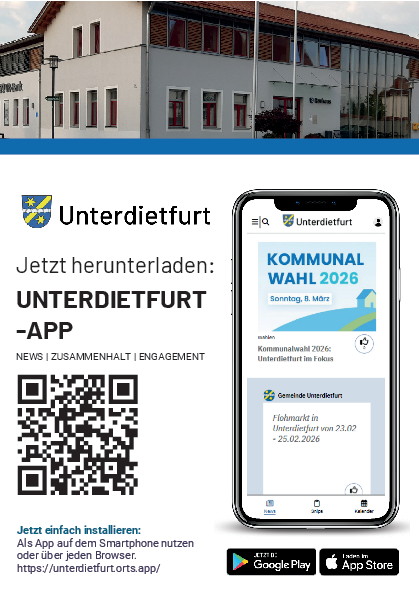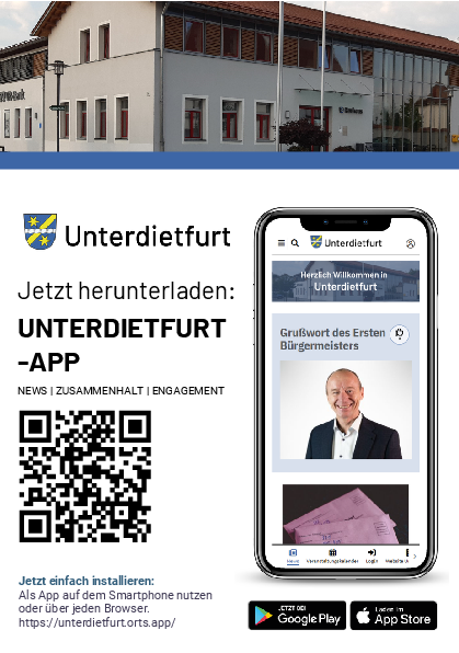 Die Unterdietfurt-App steht kostenlos im App Store und Google Play Store zum Download bereit: https://unterdietfurt.app/app.