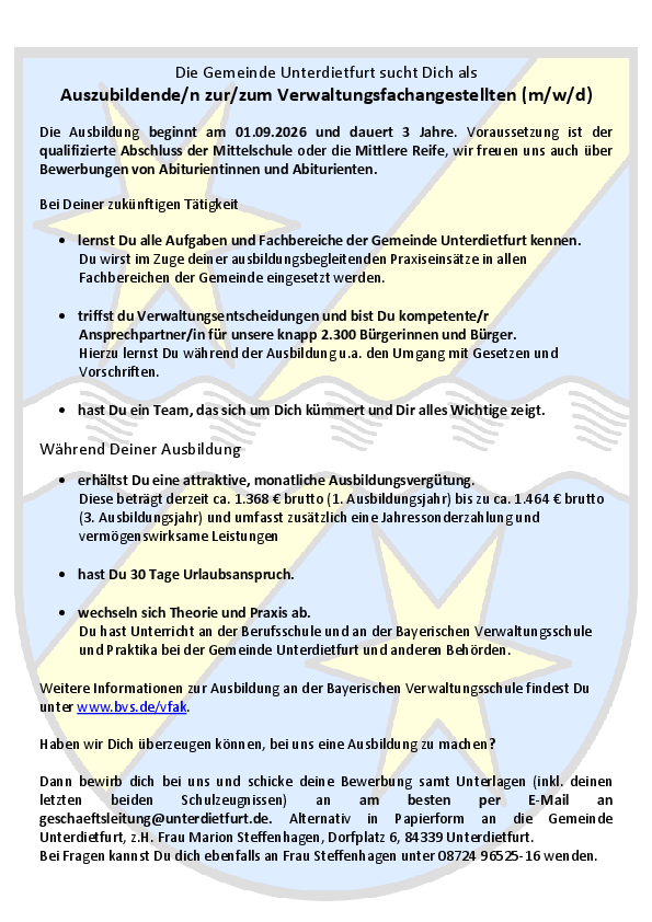 Stellenausschreibung Auszubildende/r 2026